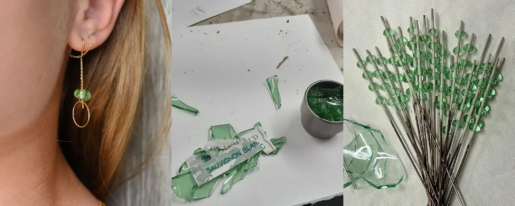 Vinoos slaat een groene weg in met upcycled sieraden. Geïnspireerd door de schoonheid van hergebruikte wijnflessen, worden de sieraden gemaakt van gerecycled glas dat zorgvuldig is omgesmolten in een Nederlands glasatelier. Van oorbellen tot kettingen, elk item vertelt het verhaal van hergebruik en verbondenheid.