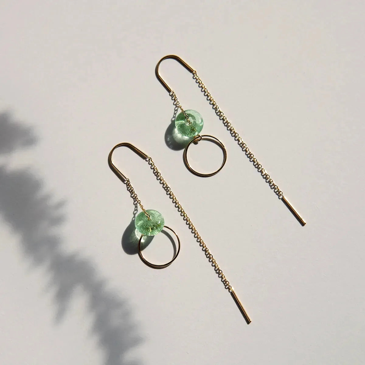 Geef je outfit een extra accent met deze prachtige oorbellen van gerecyclede wijnflessen. Elk paar is een prachtige combinatie van duurzaamheid en verfijning, met de hand gemaakt van hergebruikt wijnglas. Een bijzonder cadeau dat ook nog eens door de brievenbus past. Cheers! Je kunt de oorbel aan de achterzijde naar beneden laten hangen of haal het kettinkje nogmaals door een tweede gaatje voor een creatieve touch!