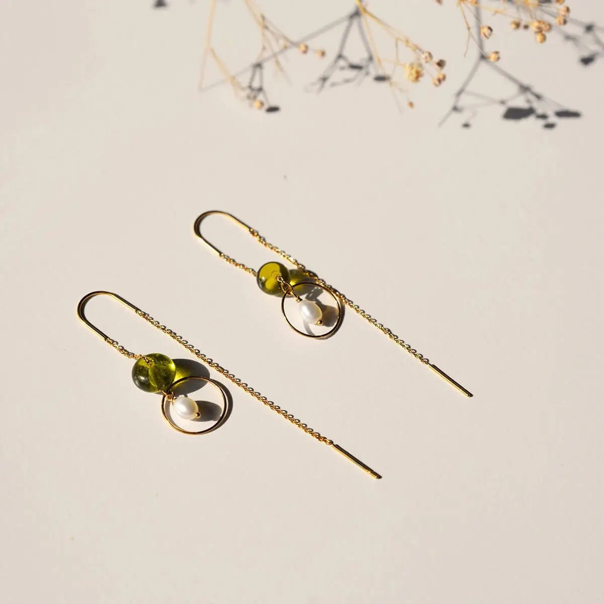 Voor Altijd. Oorbel – Groen Met Parel - shopvinoos